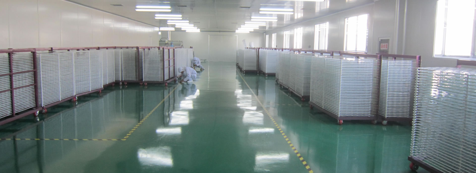 國內(nèi)玻璃鋼化、磨邊和印刷為一體的大型彩晶玻璃制造加工基地。